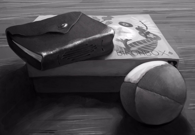 Another illustration from my desk. I enjoyed the coloring on this, the warm glow of my lamp had an interesting effect on the glass objects and the distribution of light and shadow on the desk.